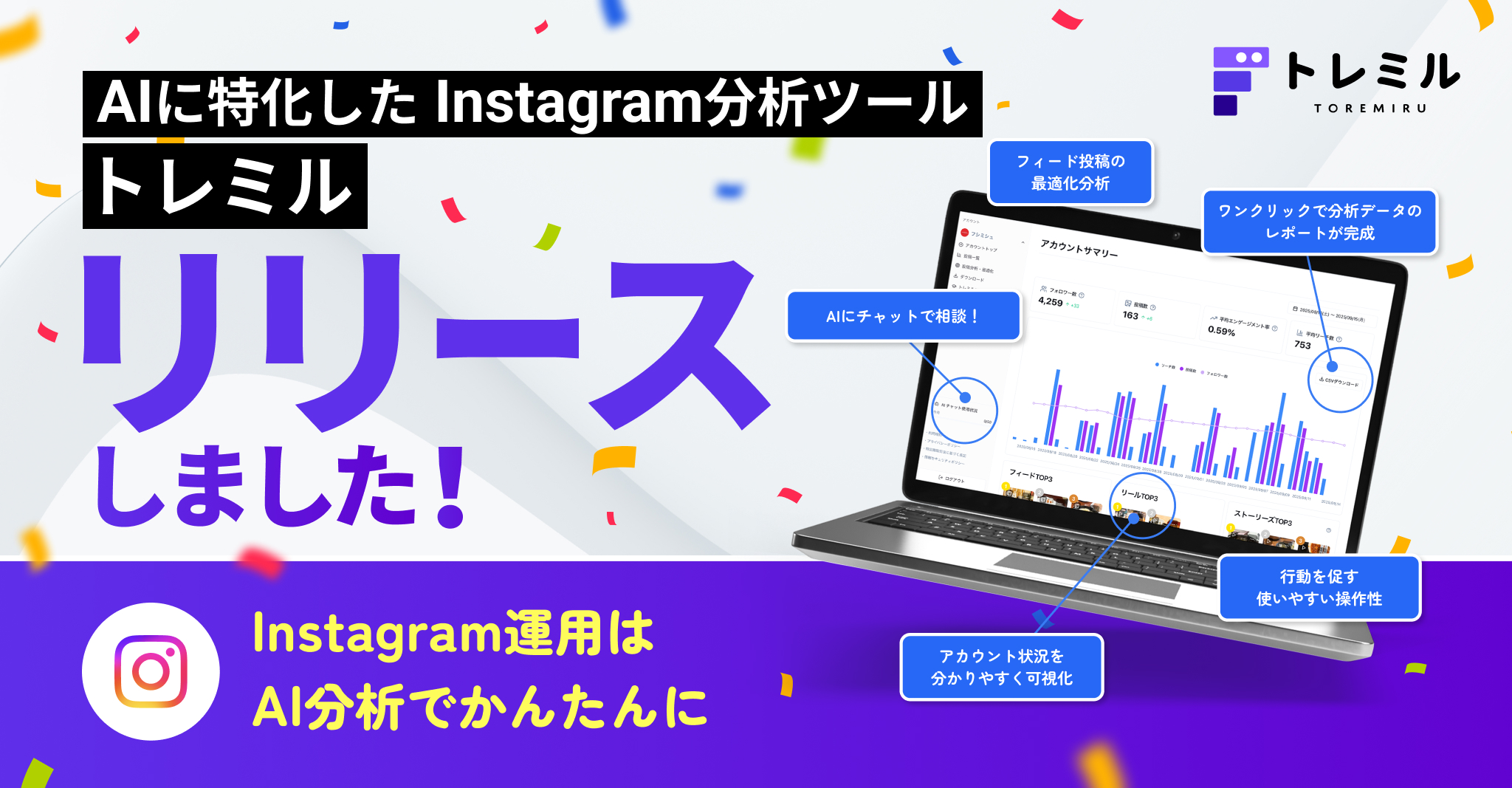 このたび、AIチャット搭載・Instagramアカウントの分析を効率化する新ツール「トレミル」 をリリースしました。