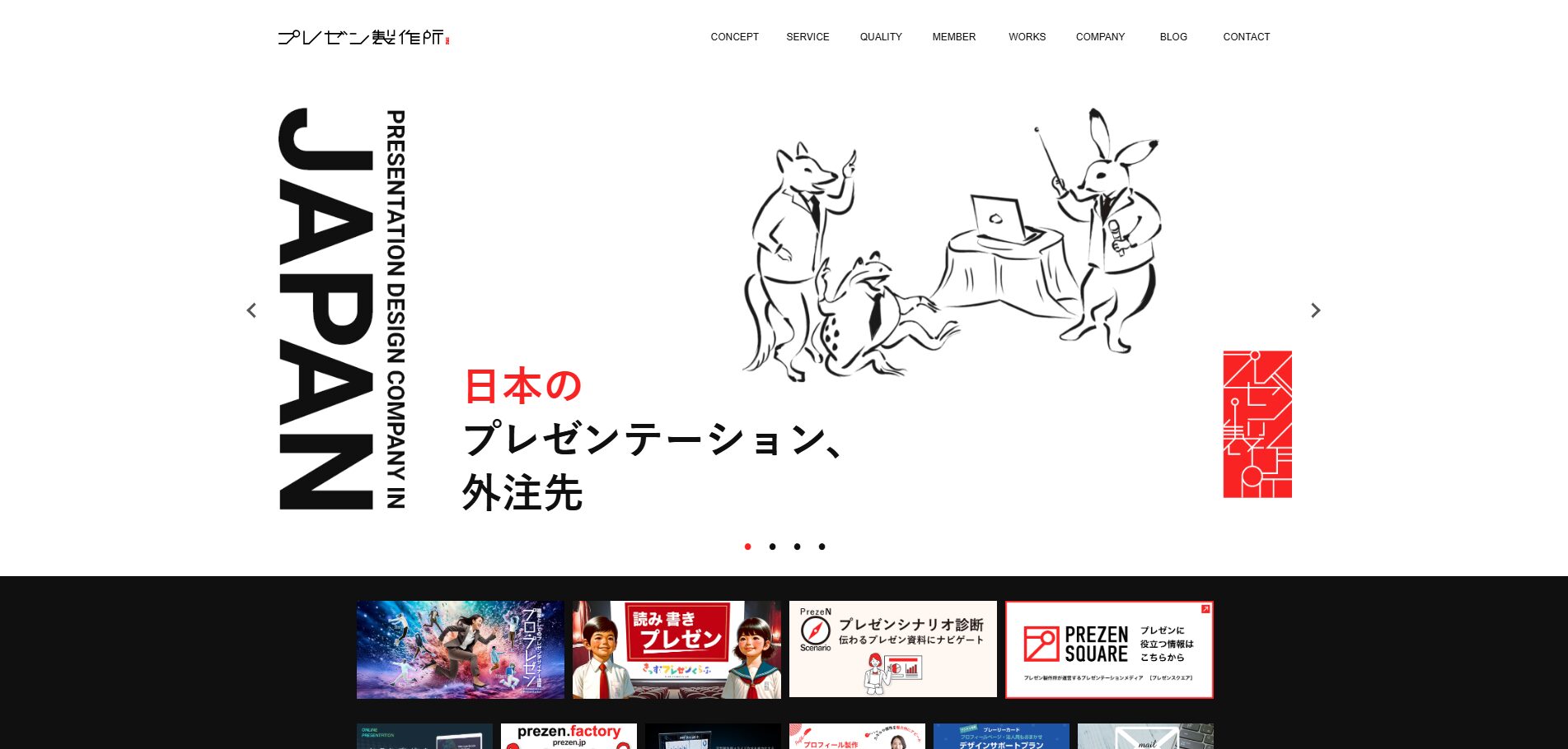 PowerPointだけでなくPrezi等も含め、プレゼン資料のデザイン・制作・作成代行を行うクリエイティブ集団。高品質・高セキュリティを掲げ、サブスク型のプレゼンデザイン支援(ポイント制+専属コンシェルジュ)も展開しています。