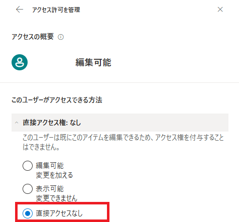 ちなみに、編集はしてほしくないがアクセス権まで削除する必要がない場合は、手順3のアクセス権の選択の際に、「表示可能」を選択しましょう。