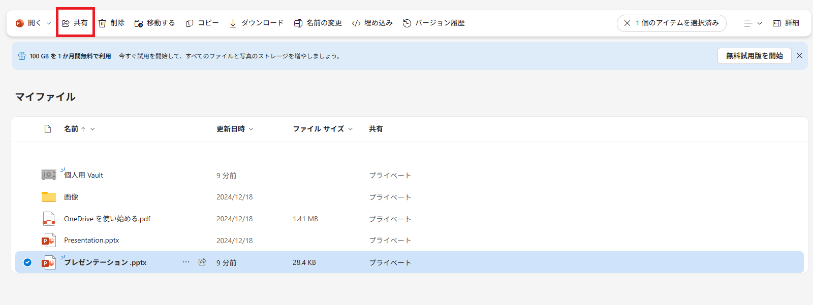 OneDriveを使用してパワーポイントの資料を共有することは、最も基本的かつ汎用的な方法で、場所やデバイスを問わずアクセスできます。しかし、無料版のストレージ上限は5GBまでとなっており、それ以上の容量を使用したい場合は有料プランに加入する必要があります。