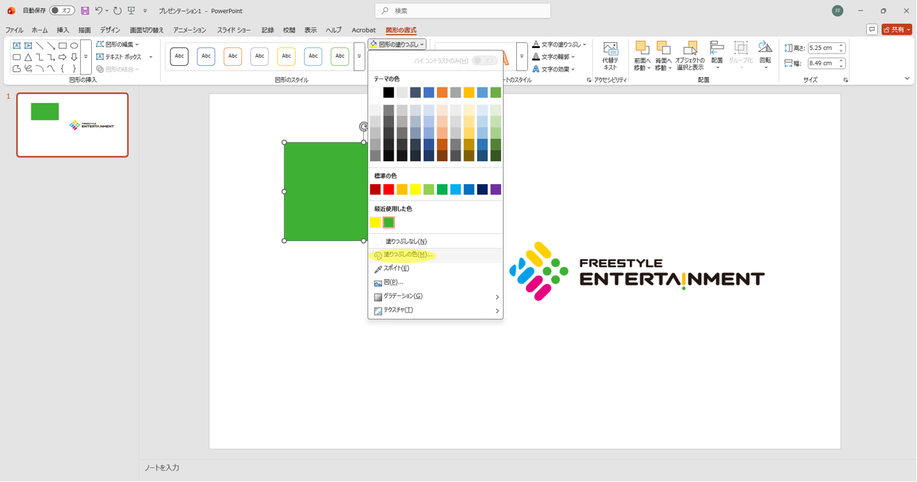 - 色の設定メニューから「塗りつぶしの色」を選択します