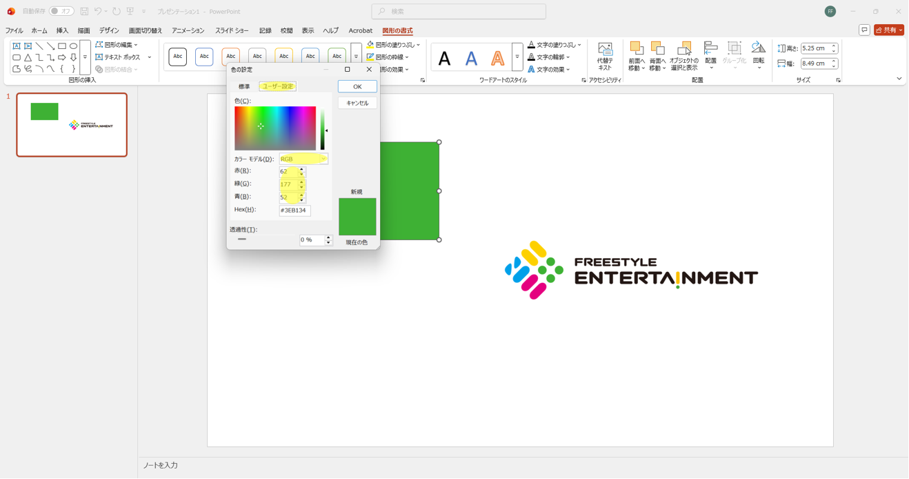 - そのRGB値をパワーポイントで入力します