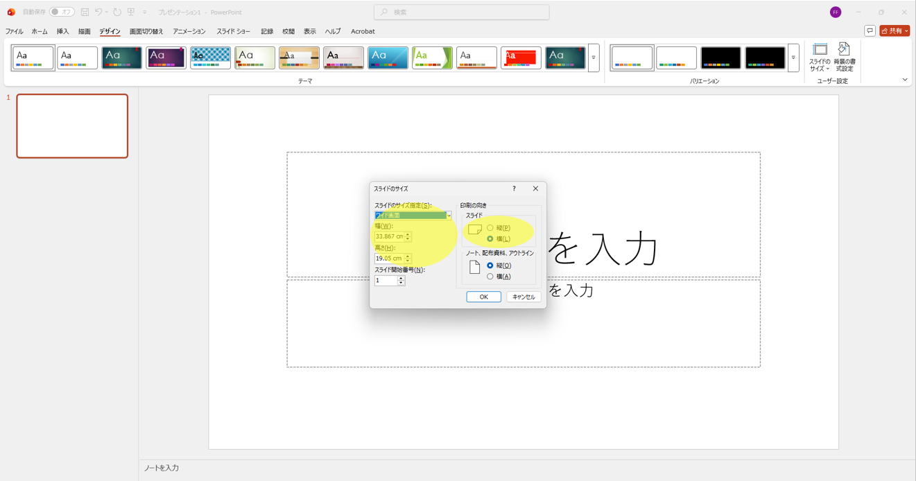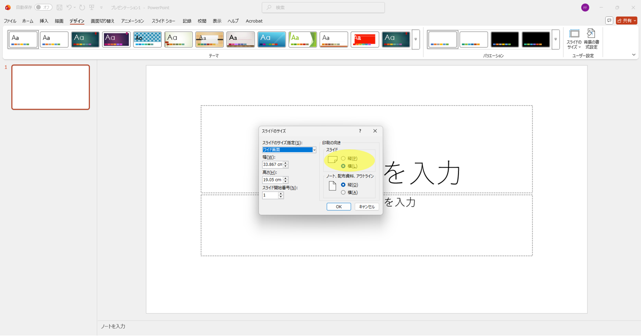 まずは、パワーポイントのスライドを縦向きに変更する基本的な操作方法を確認していきましょう。