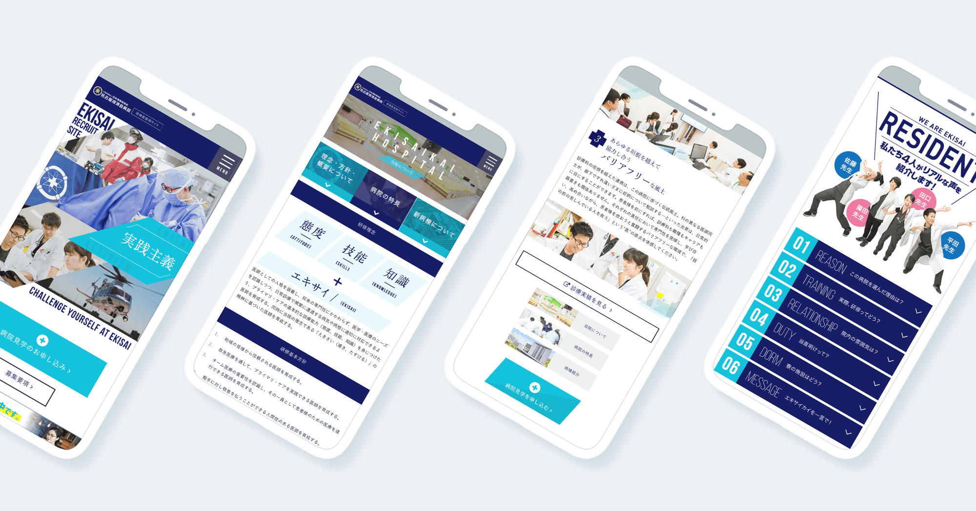 「データで見るエキサイ」や「エキサイ研修医のリアルボイス」といった現場の雰囲気を伝えるコンテンツの他、東海地区第一号の救命救急センターとして認可を受けた病院として「エキサイの救急」ページを制作し、名古屋掖済会病院ならではの特徴が伝わる採用サイトとしました。