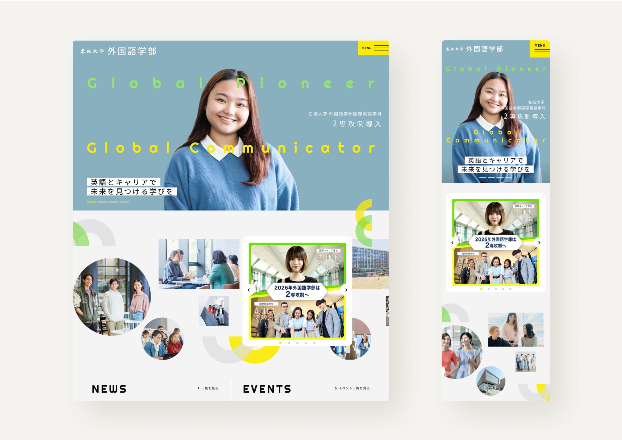 グローバル社会で活躍する“世界人材”の育成を掲げる、名城大学 外国語学部の公式Webサイトを制作しました。