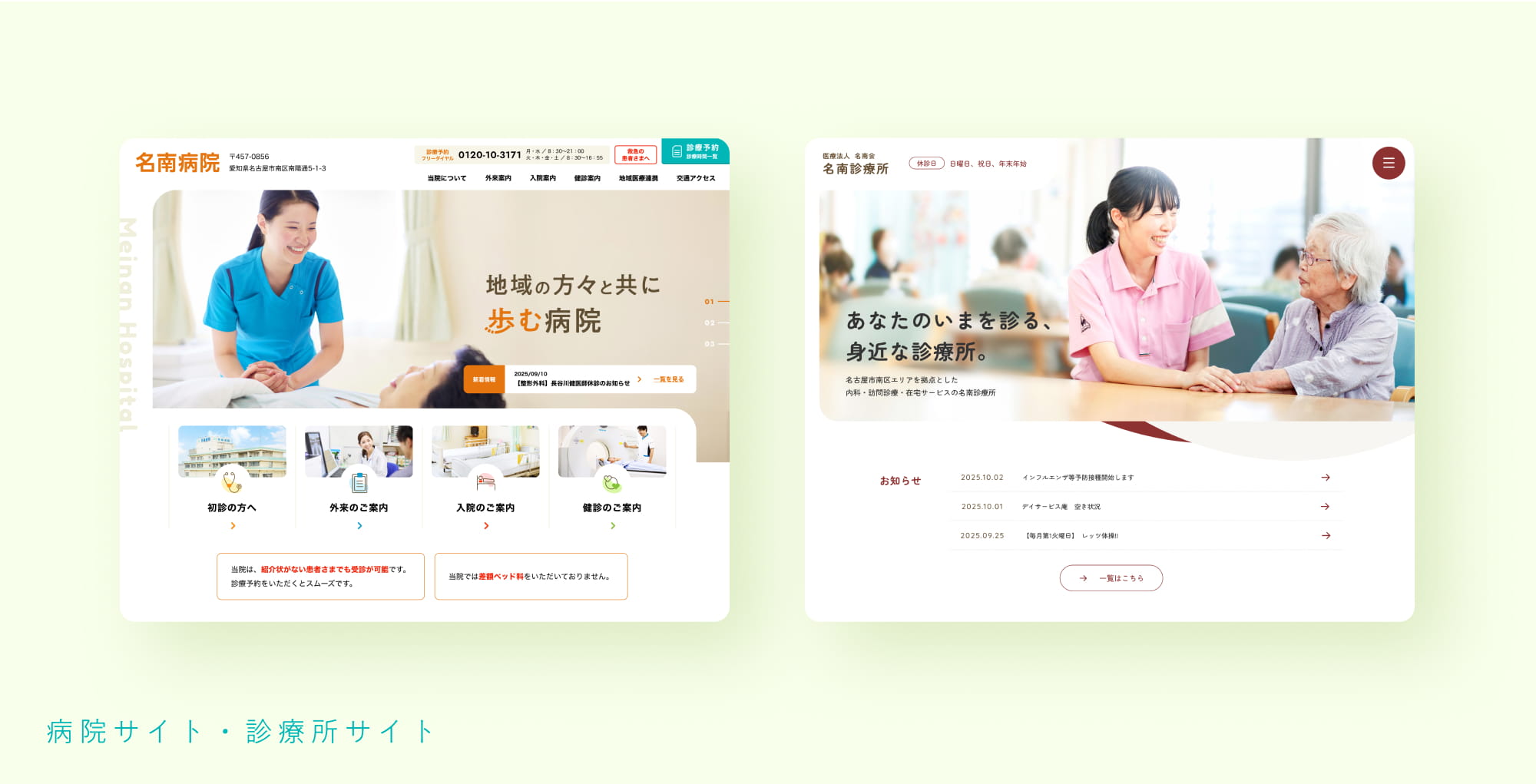 医療法人名南会(愛知県名古屋市)の法人サイト・採用サイト・名南病院サイト・名南診療所サイトを制作しました。